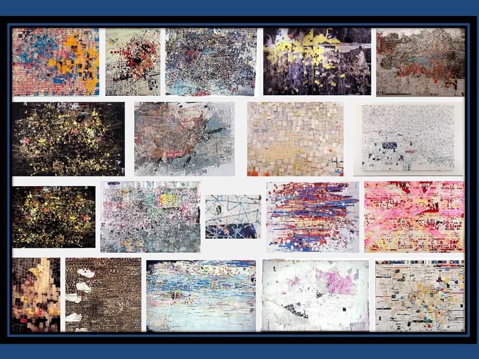 Mark Bradford scavenges from the street transforming the materials into large collages or installations to evoke the emotive state of surviving in underground economies, migrant communities or abandoned public spaces revealing the diverse cultural and geographic mix of southern California.